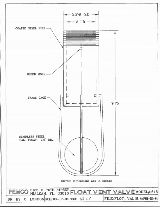 The 2″ Float Vent Valve is installed in the Model 510 Extractor Vent Valve Assembly to help prevent product mixing in manifolded underground tank lines. The valve also serves as an overfill protection device, that complies with the EPA’s 90% capacity fill restriction. When product reaches a predetermined level during UST filling, the ball float rises and seats tightly against a specially designed valve seat. This will restrict the vapor flow back to the transport tanker, creating pressure in the UST which substantially reduces the product drop flow and signals the attendant to stop filling the UST. The Valve features a rust resistant epoxy coated steel body, brass cage, stainless steel ball float and is available with 1/8″ or 1/16″ bleed holes.